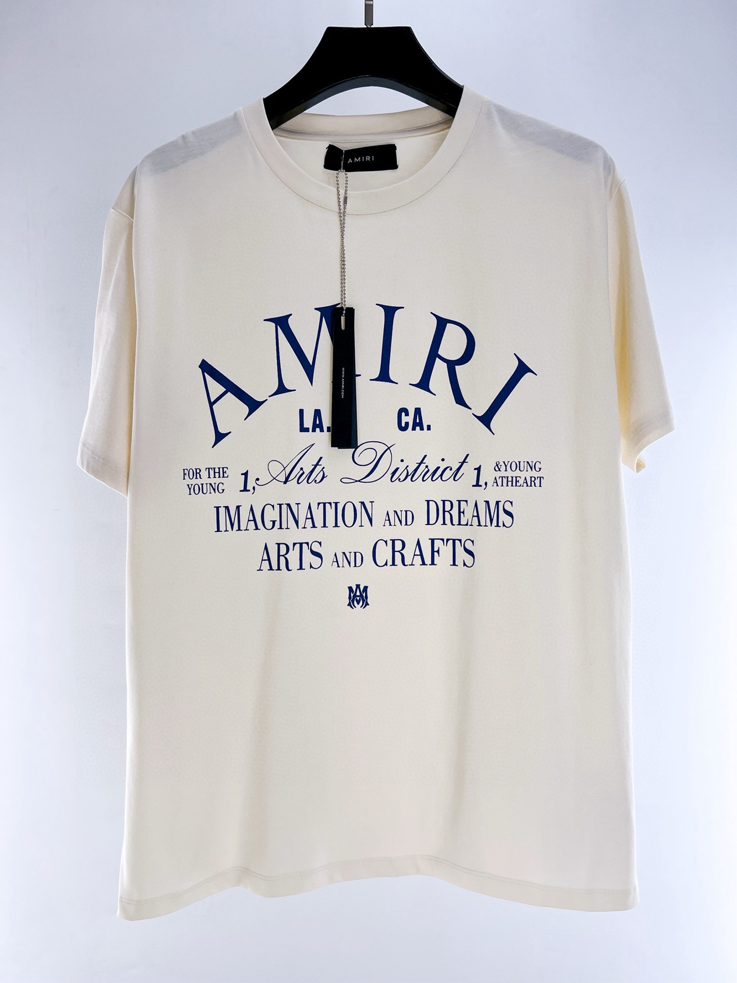 Amiri t-shirt crafted in pure cotton jersey with contrasting Arts District print on the chest. It features ribbed crew neck. Relaxed fit. The model is 187 cm tall and wears size L.