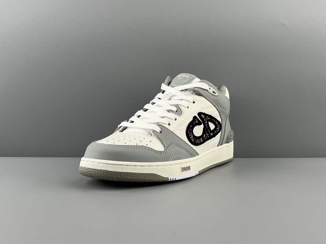New for Spring 2024, the B57 mid-top sneaker reframes the basketball shoe and is already a House essential. Crafted in blue and cream smooth calfskin with beige suede, the style is adorned with a leather CD signature on the side. The sneaker is enhanced with various hallmark details on the tongue, sole and rear, while perforated detailing, topstitching and a rubber insert accentuate its athletic appeal. Completed by a two-tone rubber sole, the sneaker will elevate any favorite outfit.